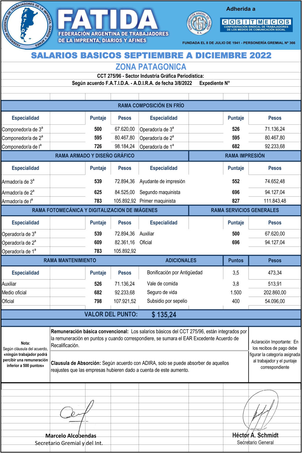 Escalas salariales Zona Patagónica