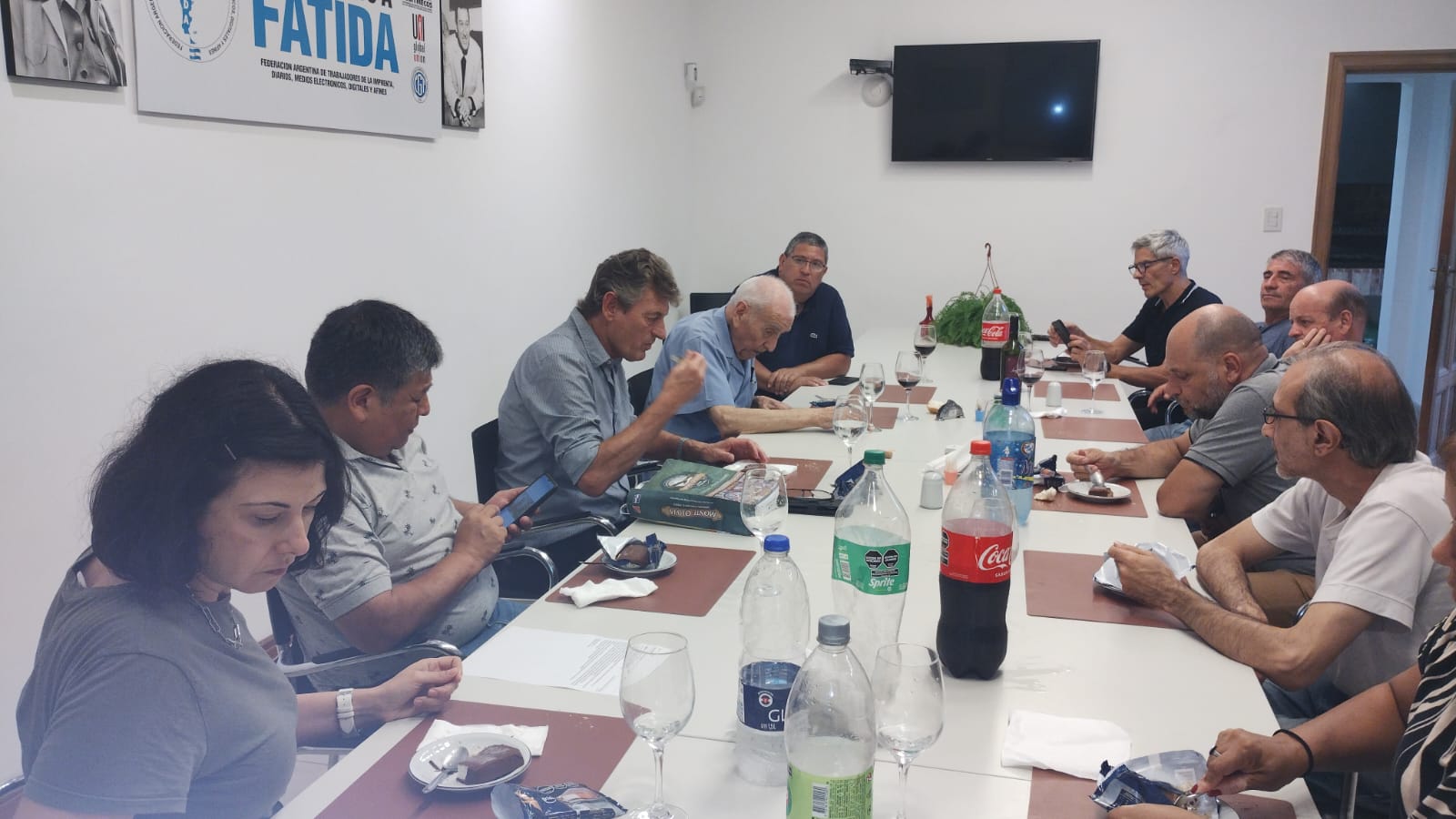 Cerca del mediodía se encontraban en la sede los compañeros Héctor A. Schmidt, Pablo Merlo, Marcelo Alcobendas, Rodolfo Dominguez, Daniel Ferreri, quienes junto a los compañeros y compañeras de la casa, Liliana Leiva, Carolina Romero, Angie Ledesma, Dario Fernández, Lucio Provenzani, Fernando Izzo, Mario Raposo, fue agasajado con un almuerzo servido en el comedor.