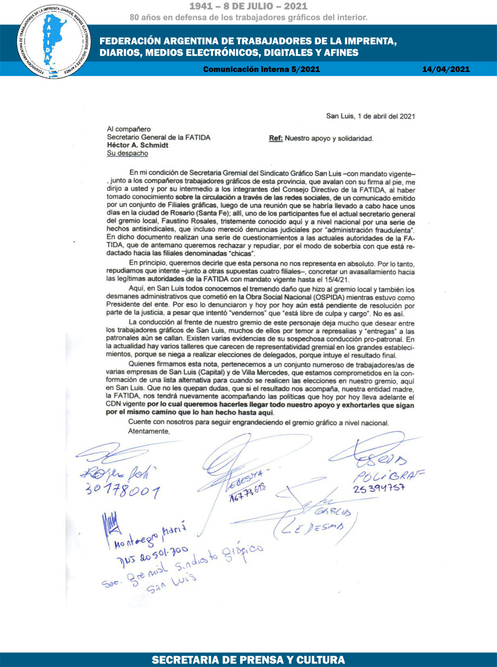FUE PRESENTADA UNA SOLA LISTA PARA LAS PRÓXIMAS ELECCIONES EN LA FILIAL SAN LUIS