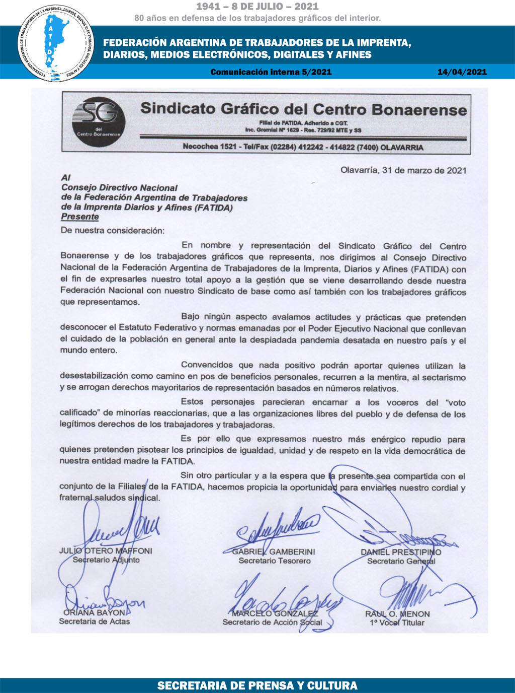 Nuestro decidido apoyo al gobierno por las medidas dispuestas ante la nueva ola de la pandemia