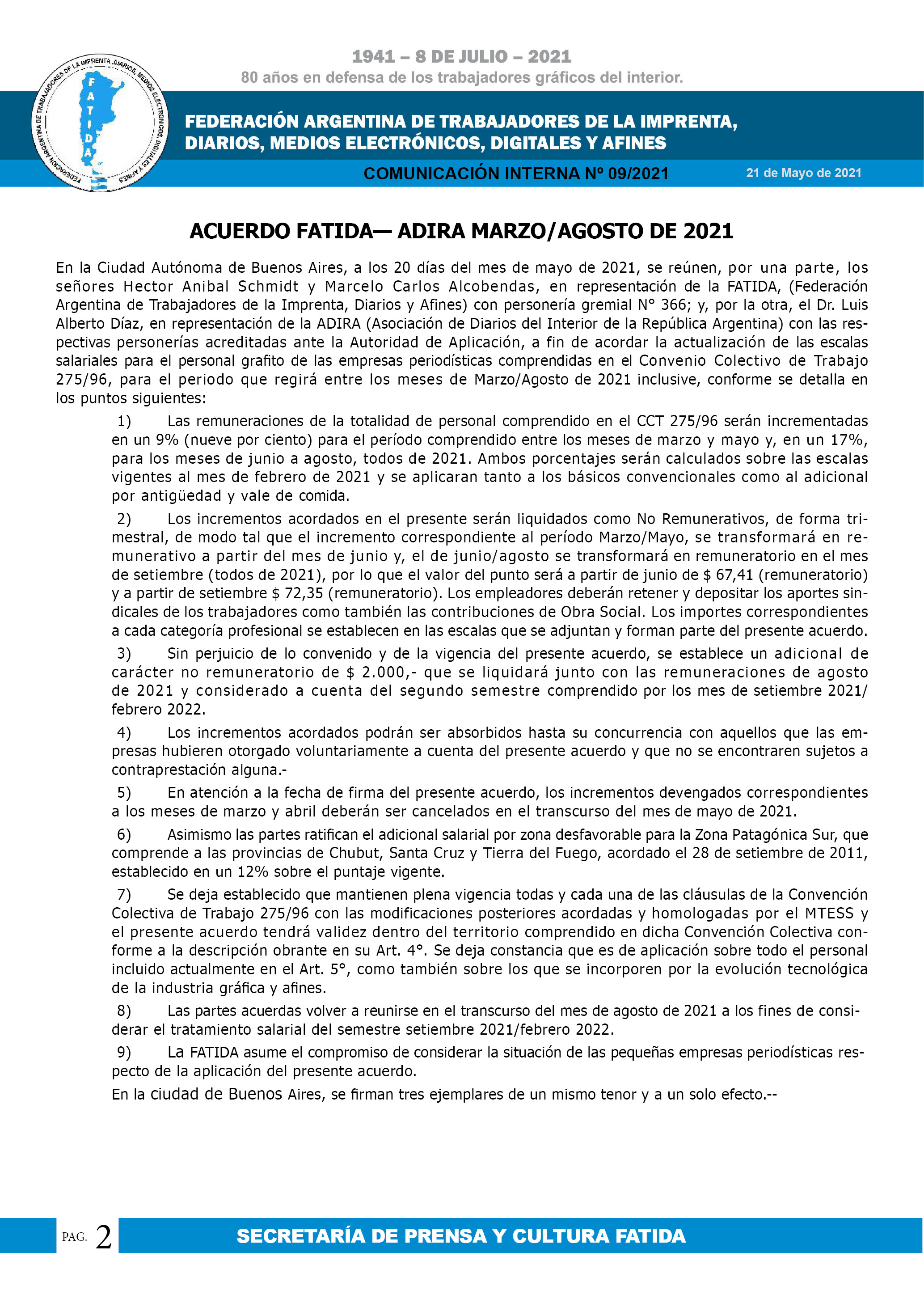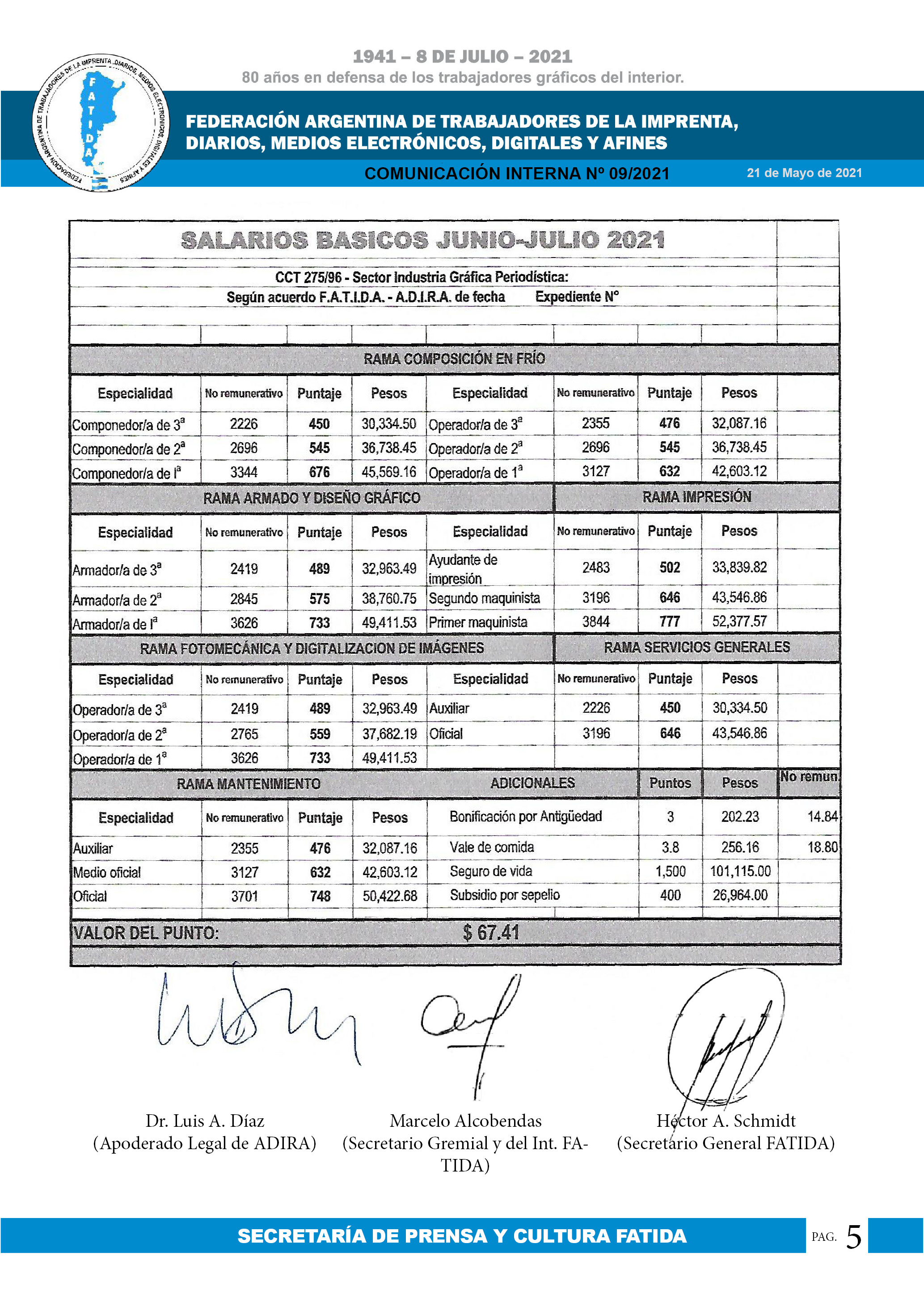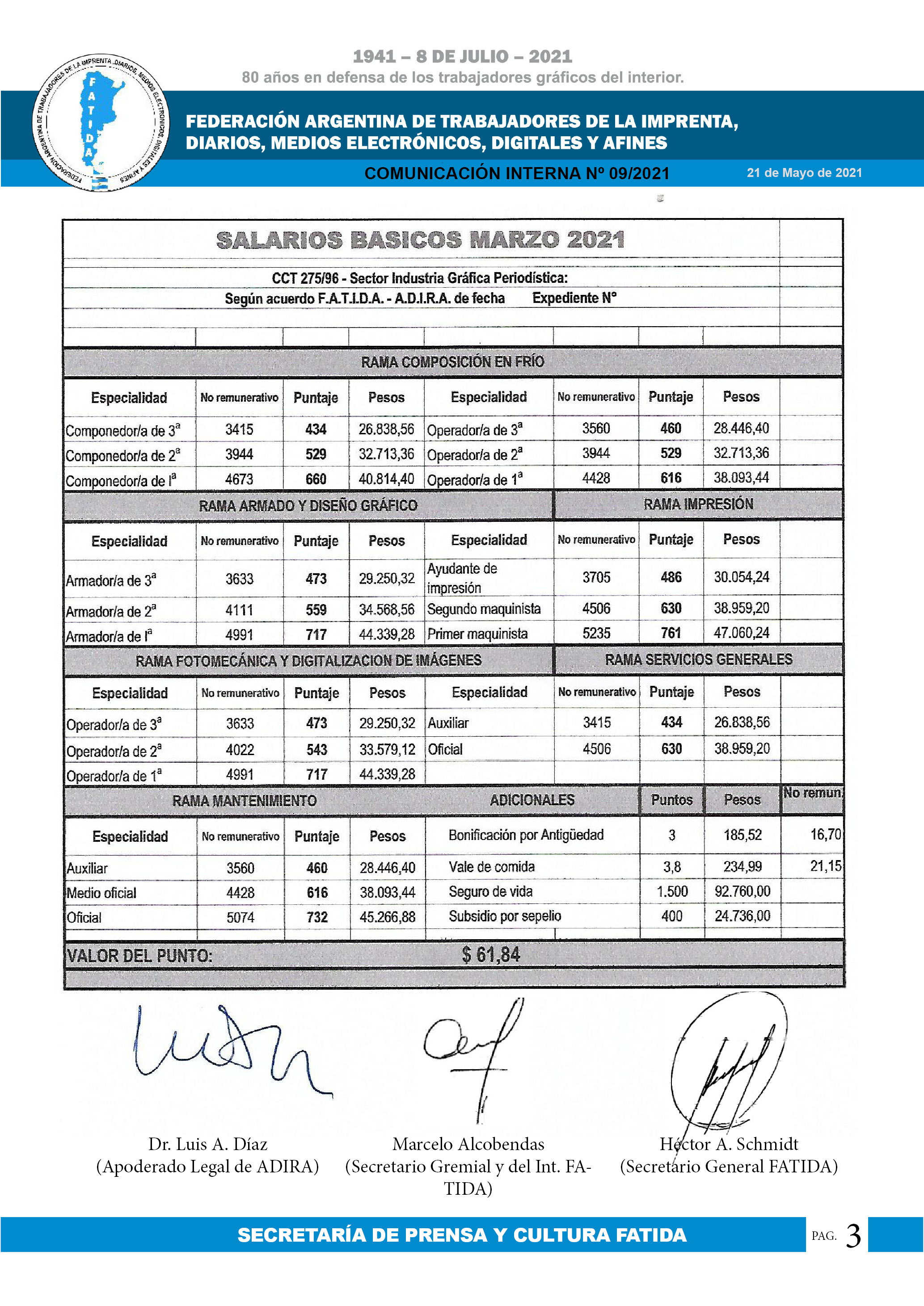 Escala salarial Diarios Agosto 2021
